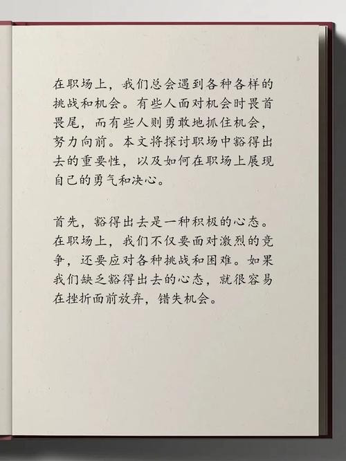 “职场即是要豁得出去”——这句话时常被用来描绘那些敢于突破惯例、敢于承担风险的职场东说念主。相干词,当咱们深切想考这句话的真实含义时,会发现“豁出去”并非浮浅的应答行事,而是一种需要在勇气与聪惠之间找到均衡点的职场形而上学。